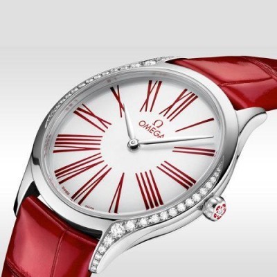 OMEGA/欧米茄瑞士手表 碟飞系列镶钻石英女士腕表 皮带白盘428.18.36.60.04.002